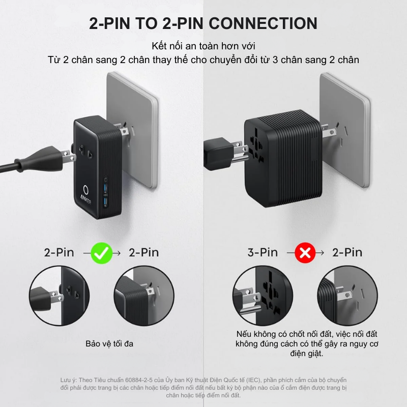 Đúng như tên gọi “Nano”, bộ chuyển đổi A9215 sở hữu một kích thước vô cùng ấn tượng. So với các loại ổ cắm kéo dài hay bộ chuyển đổi thông thường, A9215 nhỏ hơn đến 50%, giúp tiết kiệm không gian tối đa trong vali hoặc túi xách của bạn. Lớp vỏ ngoài được làm từ chất liệu cao cấp, chống bám vân tay và chịu nhiệt tốt, mang lại cảm giác cầm nắm chắc chắn và sang trọng. Bạn có thể dễ dàng cắm A9215 vào bất kỳ ổ điện nào mà không lo che khuất các ổ cắm bên cạnh, một điểm cộng cực lớn cho những ai thường xuyên ở khách sạn hoặc làm việc tại quán cà phê.
